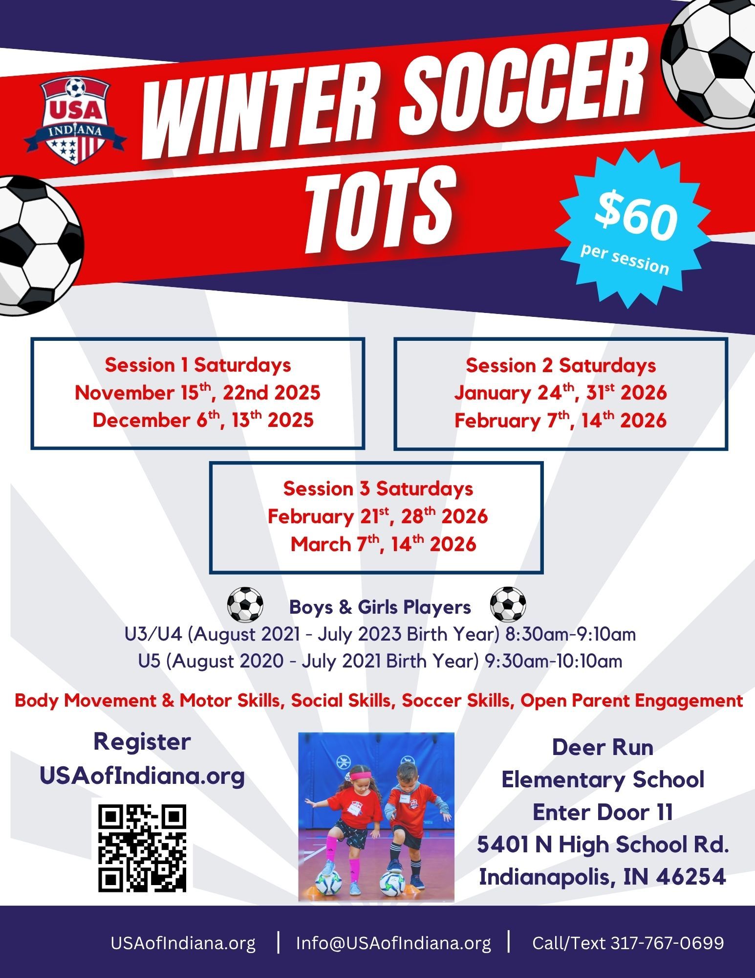 Kick off the winter with our Winter Soccer Tots program! Your little one will build motor skills, makes friends, and learn the basics of soccer in a fun, supportive environment at Deer Run Elementary School.